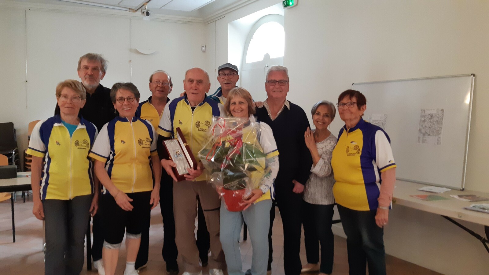 Nous avons profité de cet événement pour remettre à notre président d'honneur, Jean Mourizard, un trophée qui marque son jubilé de 50 ans de présidence de la Roue d'or, de 1975 à 2025.