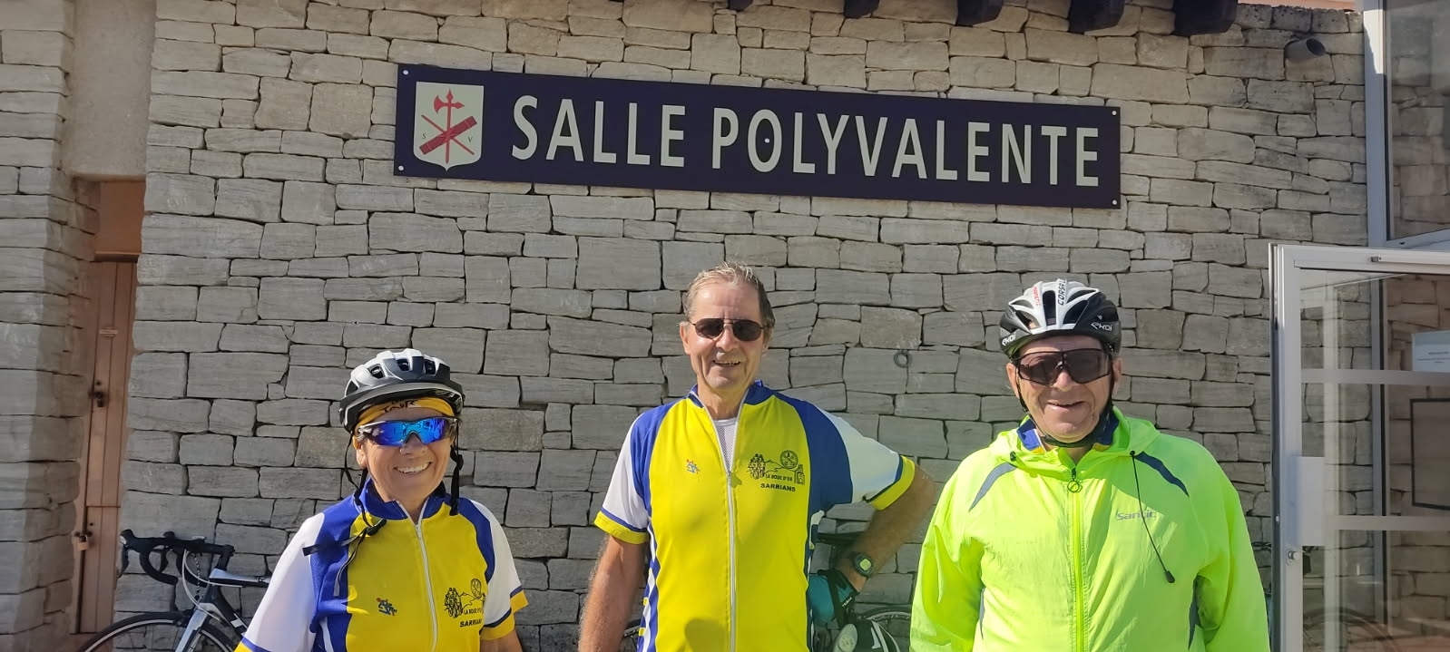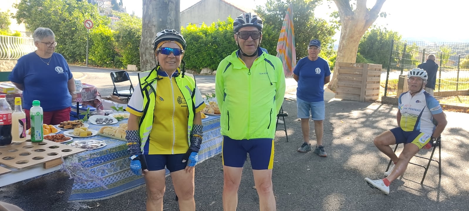 Randonnée de la St Sauveur. Malgré le mistral, joli petit circuit de 50 kilometres pour Martine, Pierre et Michel qui a rajouté quelques kilometres après l'arrivée. Bon ravito aux écoles de Methamis.