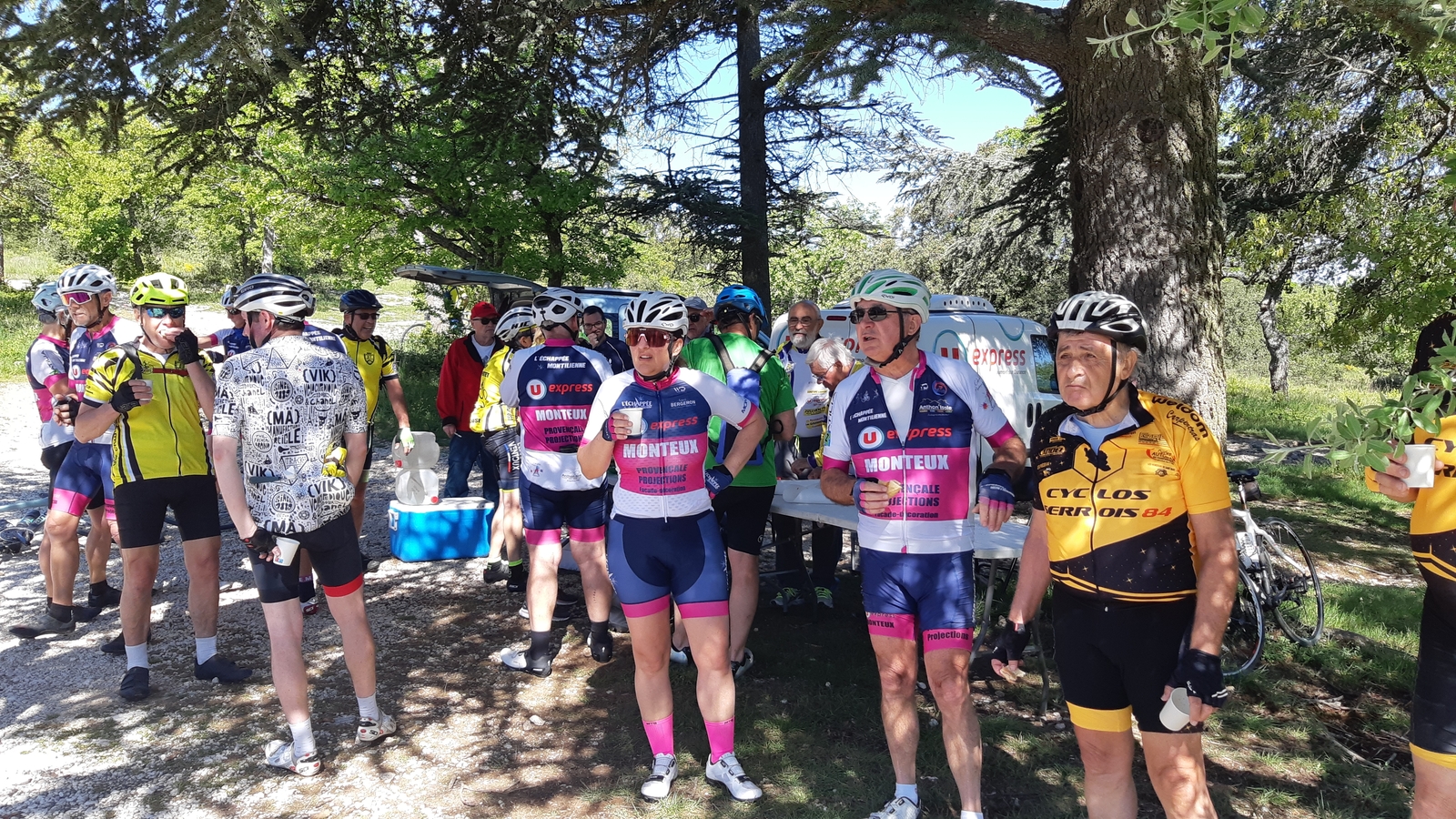 Randonnée du velo club le thor gadagne. Beaucoup de monde, belle journée, Martine, Louis et Pierre ont fait le circuit de 67km avec ravito au sommet du col des 3 thermes, montée par Venasque et retour par Gordes.
