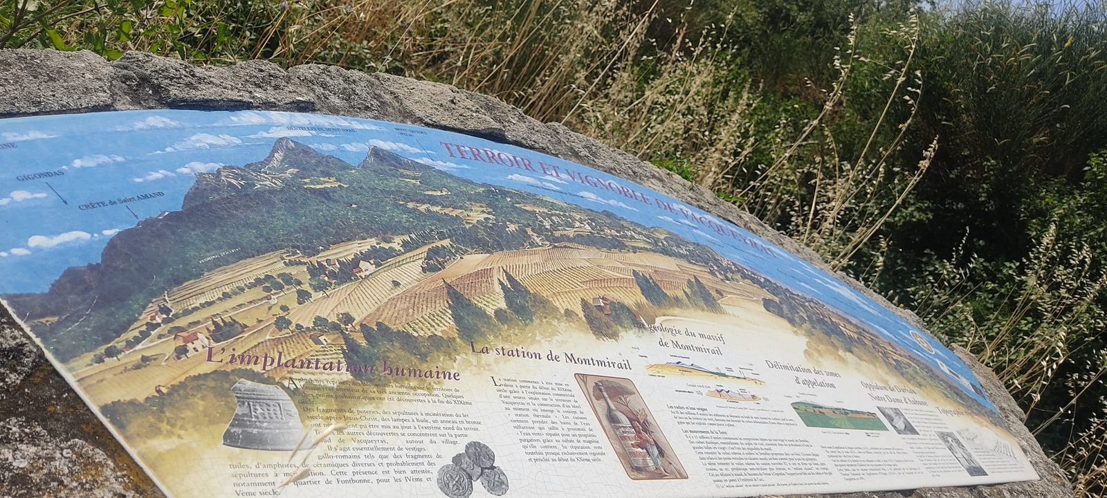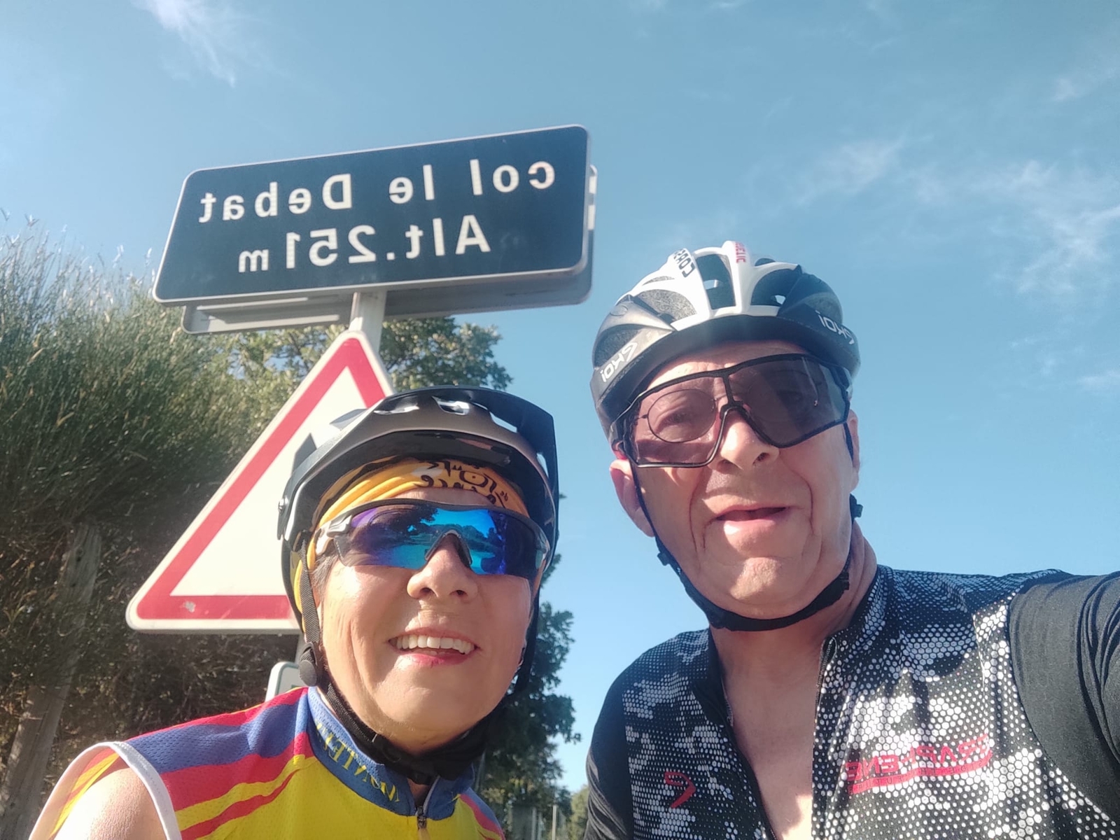Sortie Pierre et Martine départ de la gare de Sarrians, cairanne, col du débat, Villedieu, seguret, bas de sablet, ancienne rte du chemin de fer, la ponche, Sarrians. Arret à la table d'orientation sur les garrigues. Parti à 7h arrivée à 10h15, environ 61 km D+415m, juste avant la chaleur. Bonne journéeJe ne sais pas pourquoi la photo du col du Débat est à l'envers !!