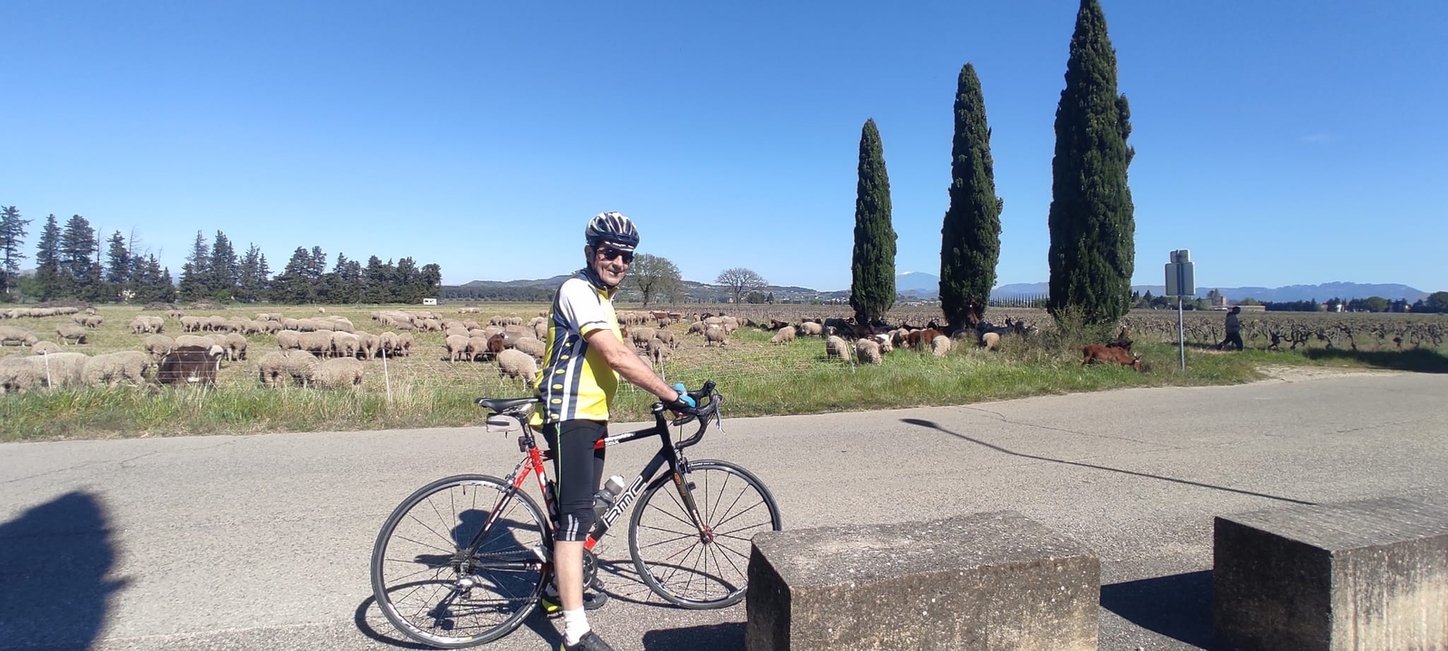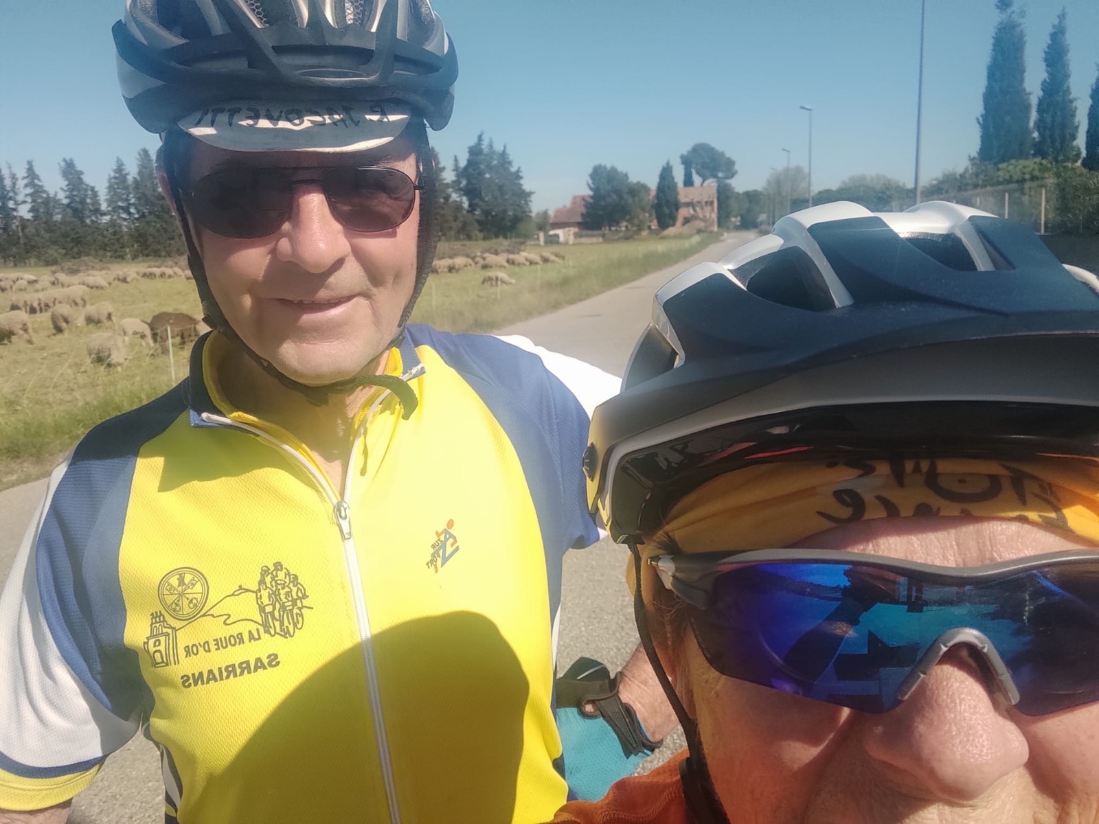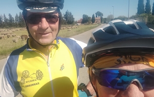 90 kilometres sous le soleil pour Martine et Michel vers Serignan , Rochegude, accompagné par Claude Giraud sur les 10 premiers kilomètres.